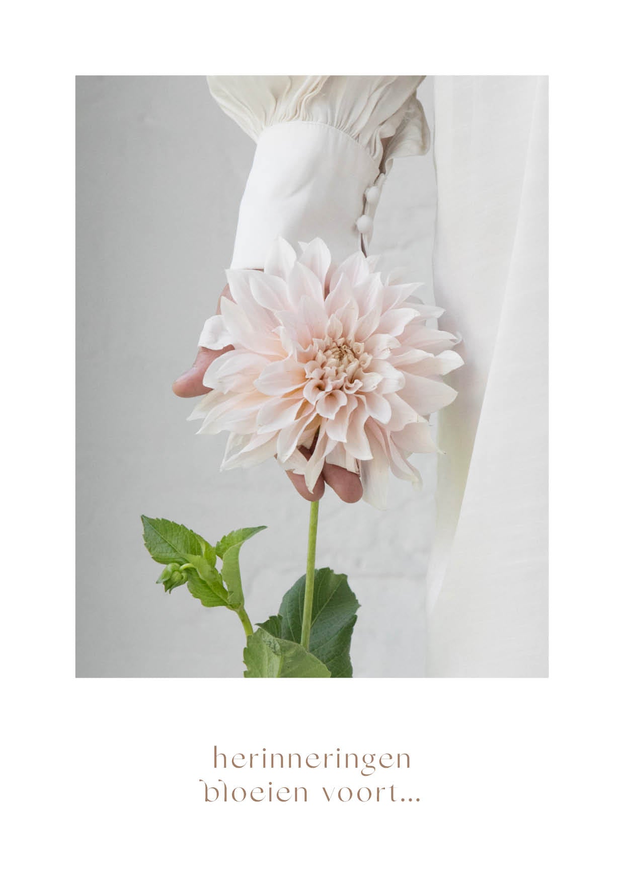 Herinneringen bloeien voort… is geschikt bij verlies, maar ook bij momenten van terugkijken, koesteren en verdergaan.